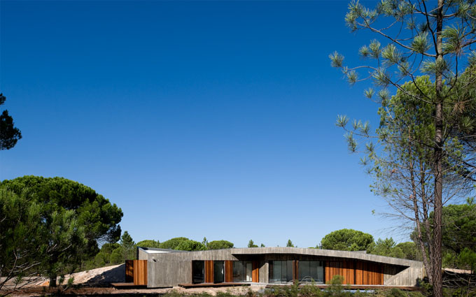 A moradia com 404 m2 é uma obra em betão à vista e foi construída sobre um antigo caminho o qual foi depois reposto por cima da casa.